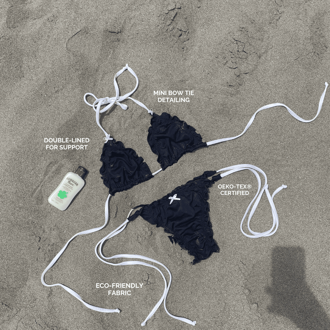 The new Amelia Bottoms bring a flirty touch to a timeless silhouette, featuring ruffle edges, moderate coverage, and a single mini bow tie for added charm. Designed with a flattering low rise fit, they offer the perfect balance of style and comfort.